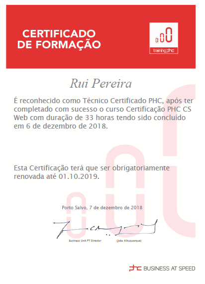 Certificação PHC CS WEB